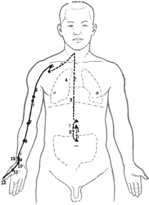 Между тем и научные исследования начали давать интересные результаты. В 1898 году английский невропатолог Генри Хэд обнаружил на поверхности кожи зоны, названные впоследствии его именем, которые становятся сверхчувствительными к давлению, если заболевает орган, связанный нервными окончаниями с этим участком кожи. В более поздние годы русские физиологи провели всесторонние исследования с использованием энцефалографии, электрокардиографии и рентгеновских лучей. Определение электрических потенциалов кожи в классических точках акупунктуры подтвердило связь эффективности акупунктуры с рефлекторным действием. Кожу можно представить в виде экрана, на котором спроецированы внутренние органы, связь с которыми проходит через нервные волокна подобно телефонной релейной связи. Раздражение определенных точек на поверхности кожи булавочным уколом передается рефлекторно через нервную систему на внутренние органы. Организм воспринимает такое раздражение как регулирующий фактор, благодаря которому восстанавливается его нормальная деятельность.